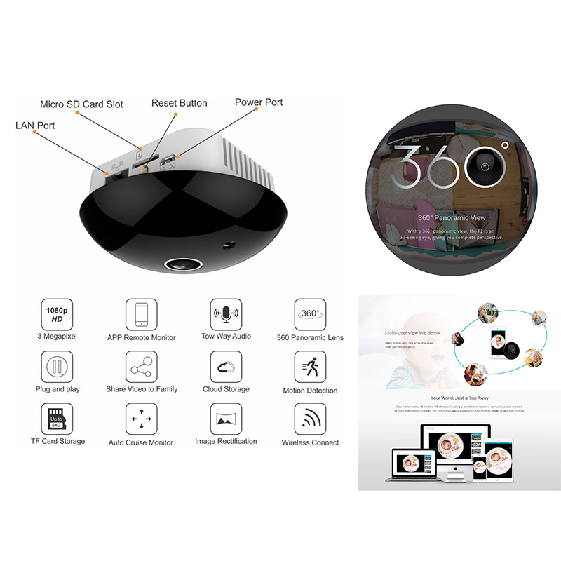 VIMTAG F2 3MP 360 DEGREE FISHEYE WIRELESS WI-FI SMART PANORAMIC IP CAMERA Support Android/iOS