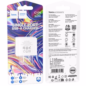 WALL CHARGER HOCO C109 USB SINGLE PORT CHARGER 10.5W